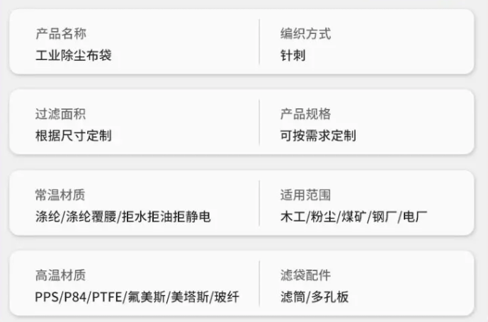 定制除尘器布袋(高温、防静电)